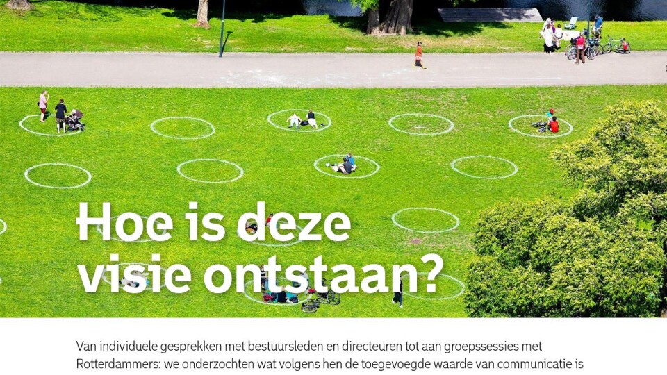 Van individuele gesprekken met bestuursleden en directeuren tot aan groepssessies met Rotterdammers: we onderzochten wat volgens hen de toegevoegde waarde van communicatie is om zo een communicatievisie te ontwikkelen die aansluit bij de behoeften, is afgestemd met ontvangers en opdrachtgevers en die verbinding legt in ons werk als communicatieprofessional verspreid over het concern.