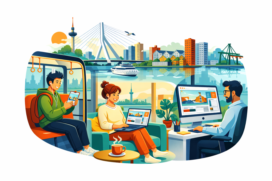Het grootste voordeel is dat het altijd en overal werkt, tenminste, als je beschikt over een device en een internetverbinding. Of een Rotterdammer nou in de tram op zijn smartphone kijkt, of een collega thuis of op kantoor achter een groot scherm zit: het magazine past zich direct aan. Geen gedoe met inzoomen op een onleesbare PDF of het downloaden van zware bestanden. Eén link is genoeg om het verhaal op elk moment en op elk device te openen.
